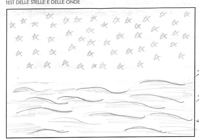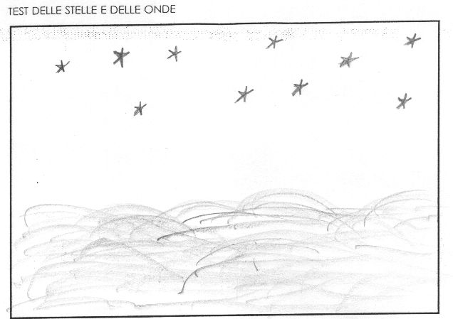 Il cielo carico di stelle omogeneamente disposte è nel segno del ben apparire e figurare ( scrittura Persona), mentre l�indecisione nel tracciare le onde del mare (vedi i tratti sovrapposti e marcati) e gli spazi anneriti nella zona a sinistra svelano che insicurezza ed indecisione nascono da un lontano problema affettivo rimosso.
